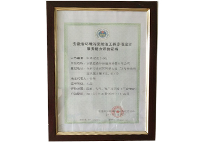 陕西省环境污染治理工程专项设计服务能力评价证书