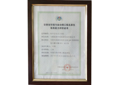 陕西省环境污染治理工程总承包服务能力评价证书