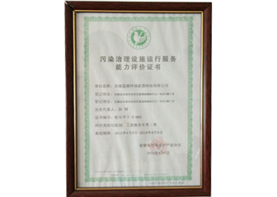 污染治理设置运行服务能力评价证书