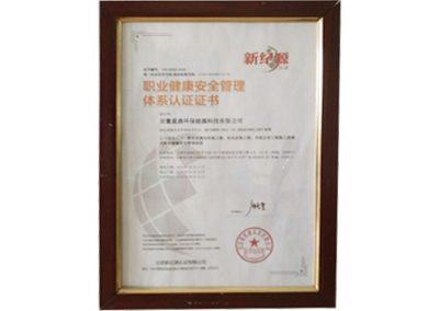 职业健康安全管理体系认证证书