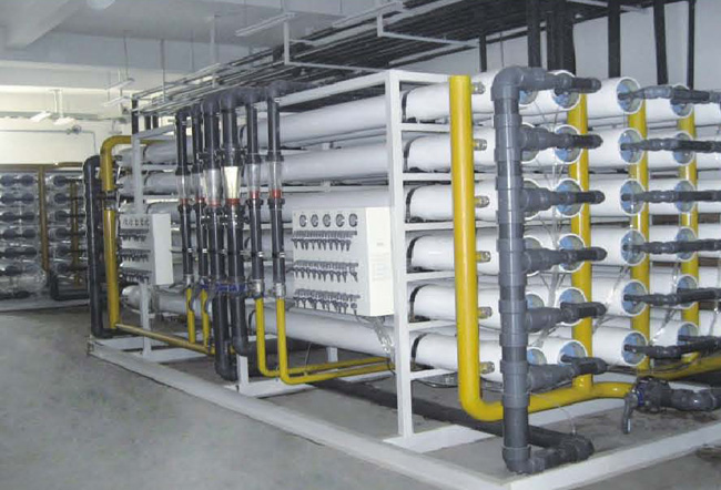 反渗透是一种借助选择透过(半透过)性膜的功能、以压力为推动力的膜分离技术,膜元件由反渗透膜导流布和中心管等制作而成,将多根RO膜元件装入玻璃钢耐压容器内,组成RO组件。本装置是脱盐系统的关键,成熟的工艺设计、合理的控制、操作及管理,直接决定着系统的正常、稳定运行;并关系到反渗透膜的使用寿命,经反渗透处理后的出水,去除了绝大部分无机盐和几乎所有的有机物、微生物(细菌、热源等)从而确保了本系统产品水的高质量、高品质。
